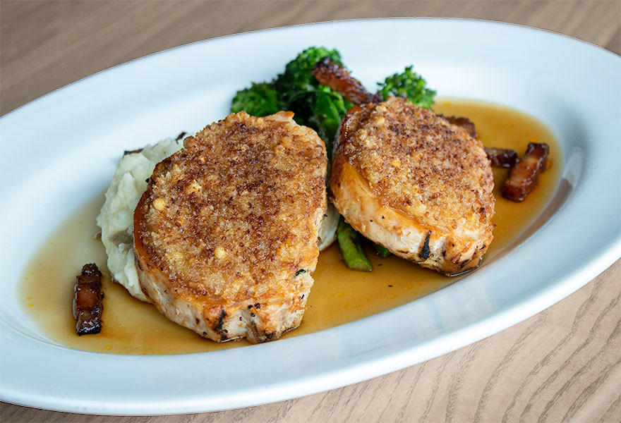 BBQ Maple Glaze, Mary’s Potatoes, Roasted Broccolini, Candied Bacon