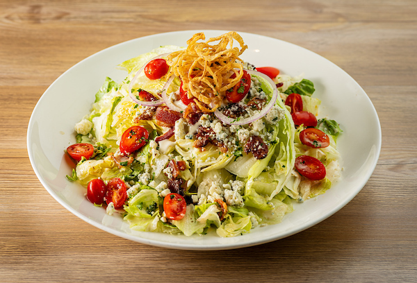 Applewood Smoked Bacon, Bleu Cheese, Red Onion, Sweet Grape Tomatoes, Crispy Onion Strings, Italian Vinaigrette, Bleu Cheese Dressing