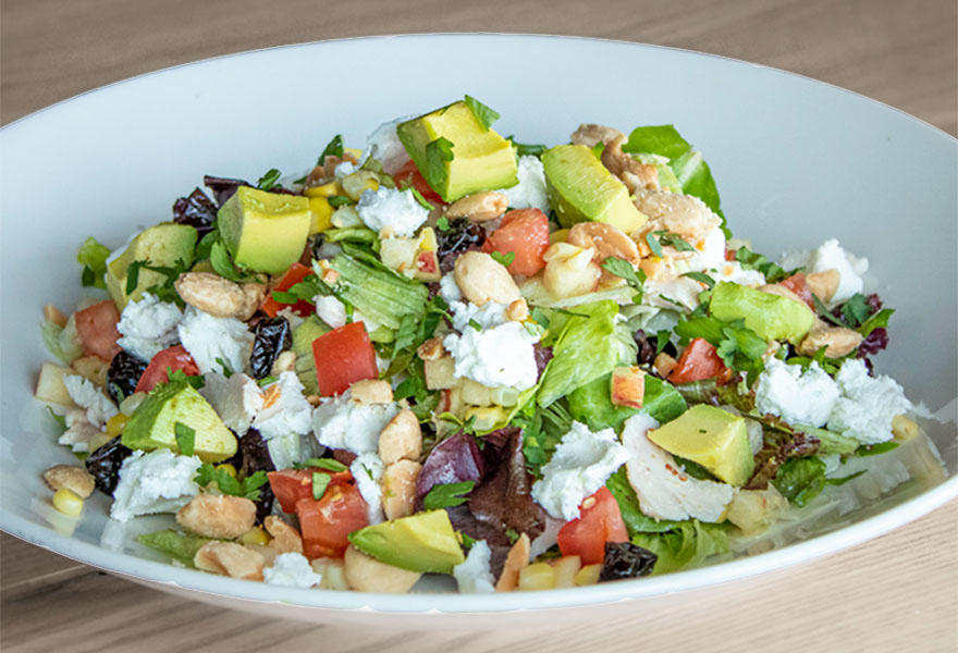 Apple, Goat Cheese, Dried Cherry, Corn, Avocado, Toasted Marcona Almonds, Cilantro, Tomato, Honey Mustard Vinaigrette. Vegetarian Upon Request