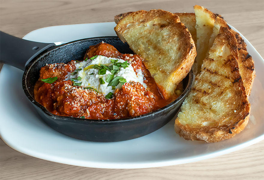Rich Tomato Sauce, Burrata Dolce, Basil, Extra Virgin Olive Oil, Crostini