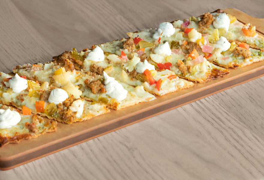 Flatbread: Caprese · Italian Sausage & Whipped Burrata, Salads: Plain Ol’ House · Chopped Wedge · Caesar