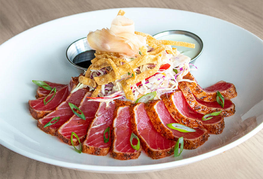 Served Raw, Ponzu-Ginger Vinaigrette, Avocado, Radish, Wasabi Cream, Sriracha